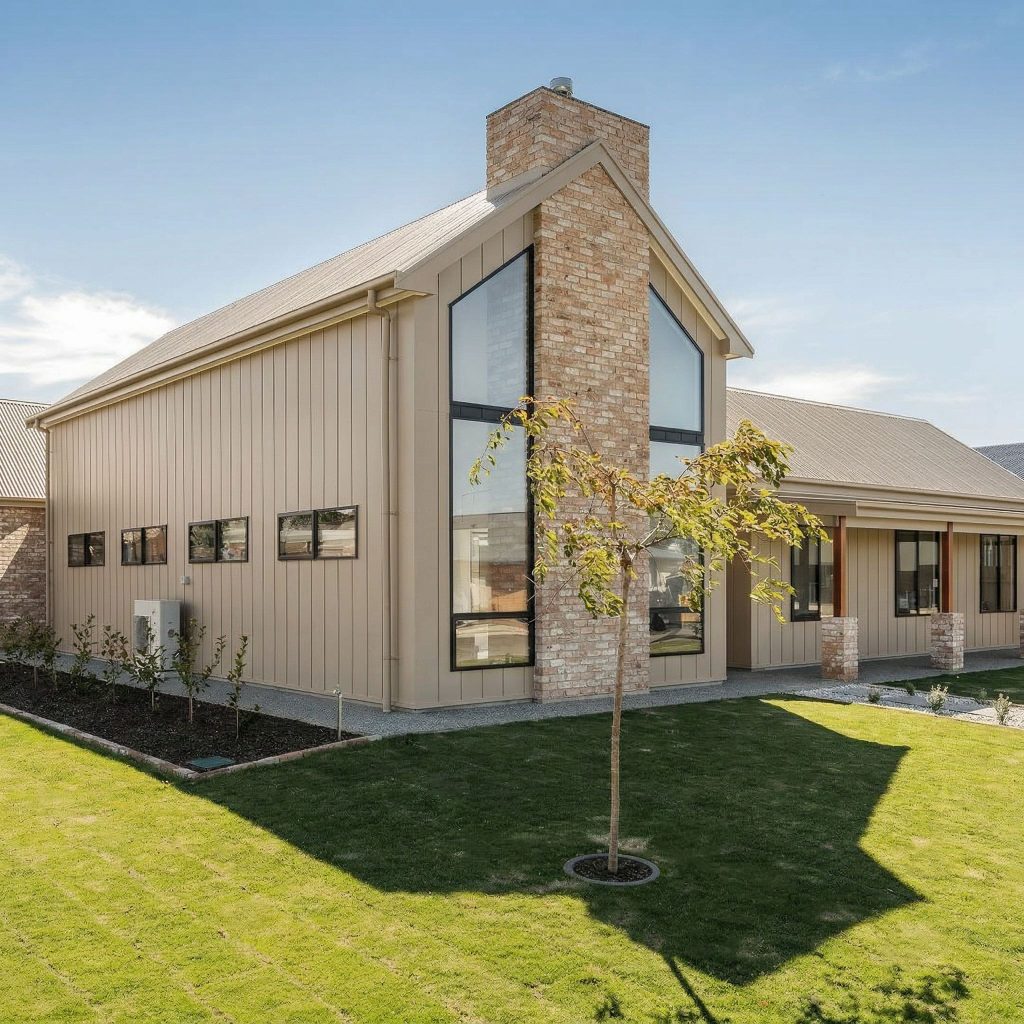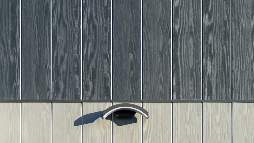 James Hardie VL Plank šķiedra cementa dēļi montēti vertikāli.
